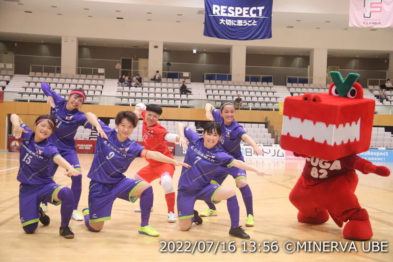 はじめまして、女子フットサルチームの「MINERVA宇部」です。