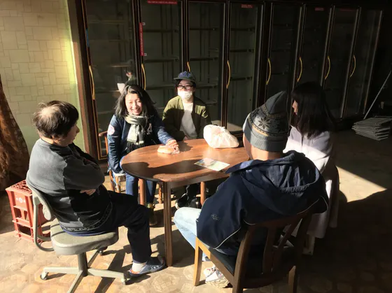 そして、地域の方々が興味をもって集まってきてくれました。ここで繋がっておくために、遠くで眺めている地域の人たちに手を振り、中に招待し、これからやることを説明。