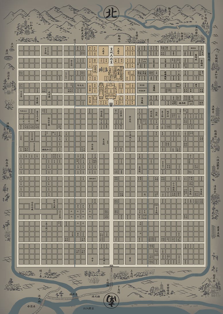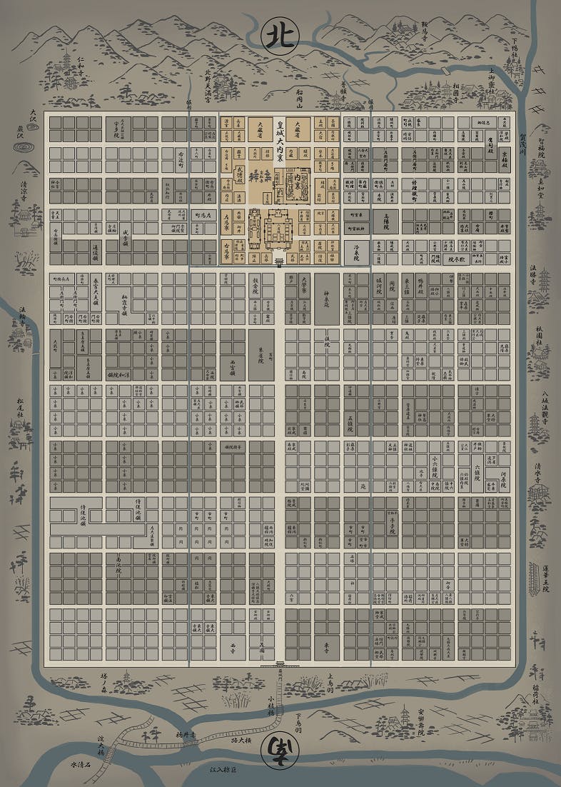 安倍晴明や源頼光、紀貫之といった有名人の邸宅などが記されており、TRPGのマップとしてもご使用いただけます。