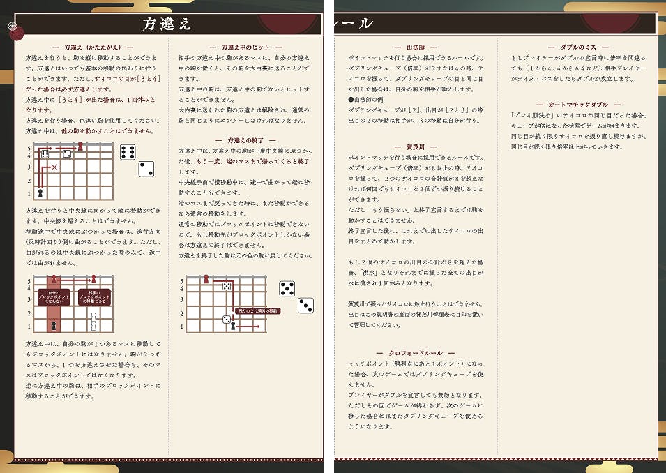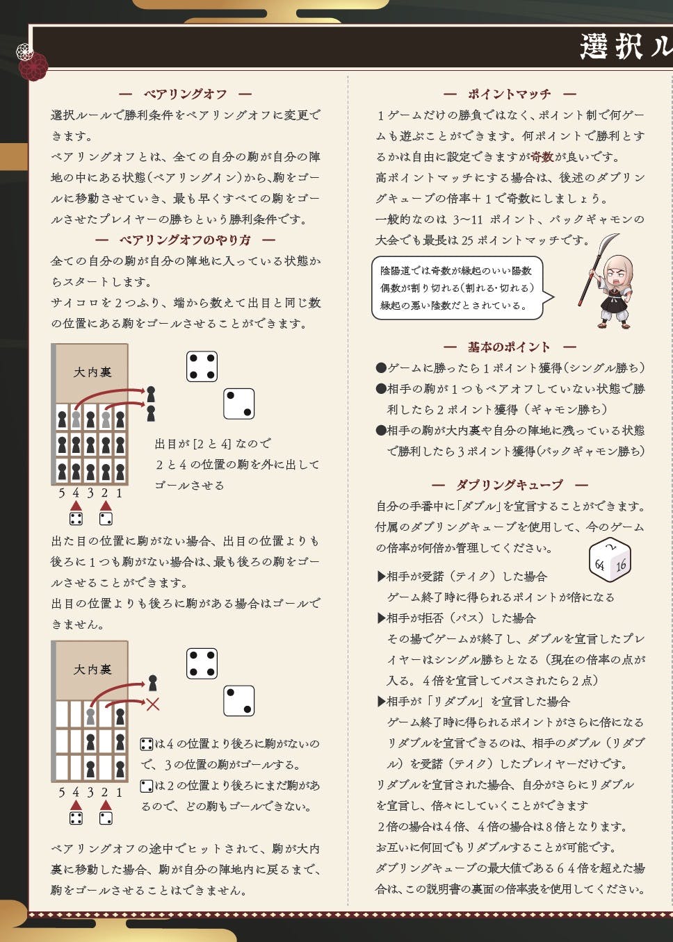 平安京バックギャモンには通常のバックギャモンにはない特殊ルールがいくつかあります。