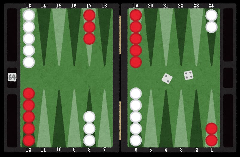 ※通常のバックギャモンのボード(画像は『いらすとや』さんのものを編集)