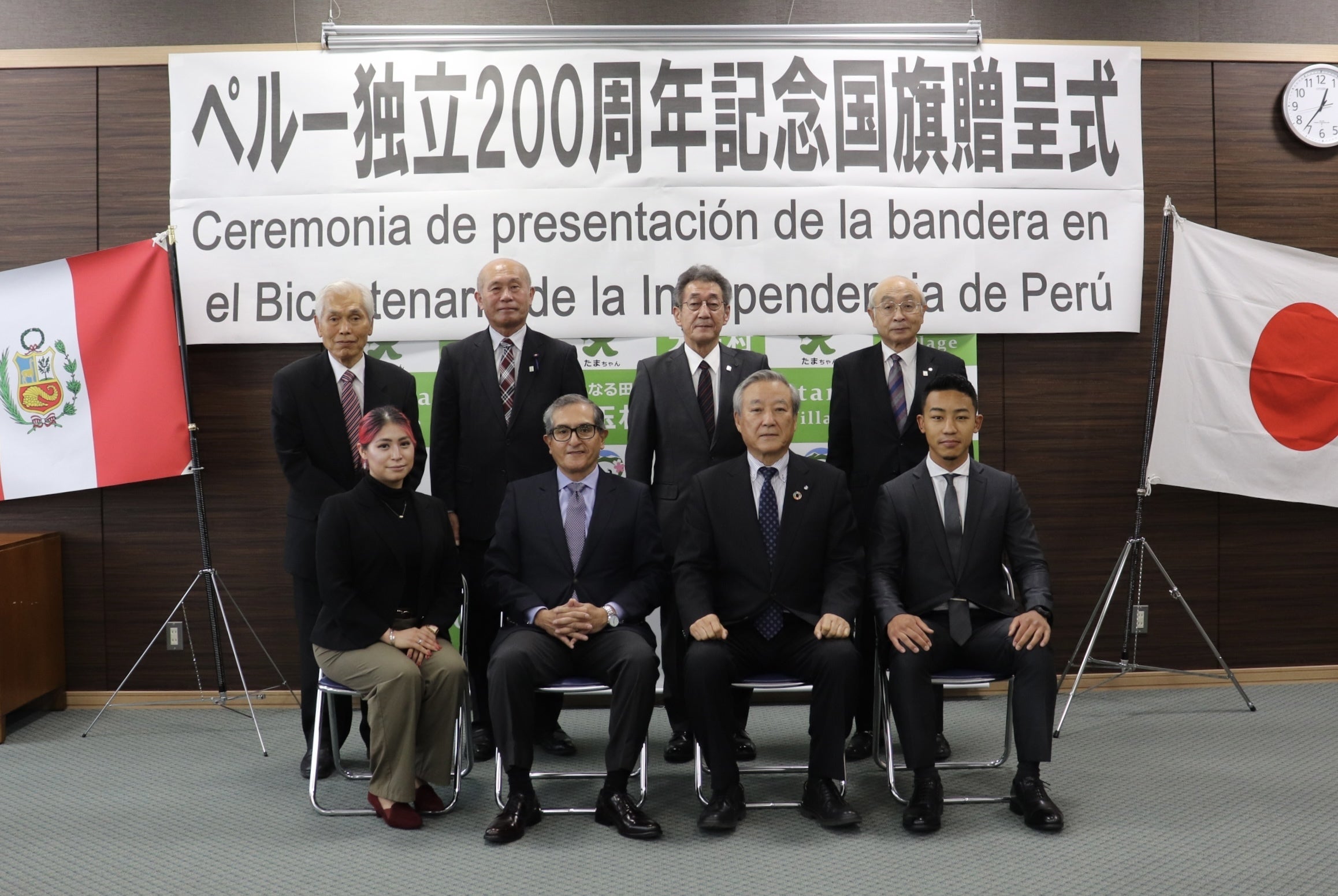 (昨年大玉村にて行われたペルー独立200周年記念国旗贈呈式)