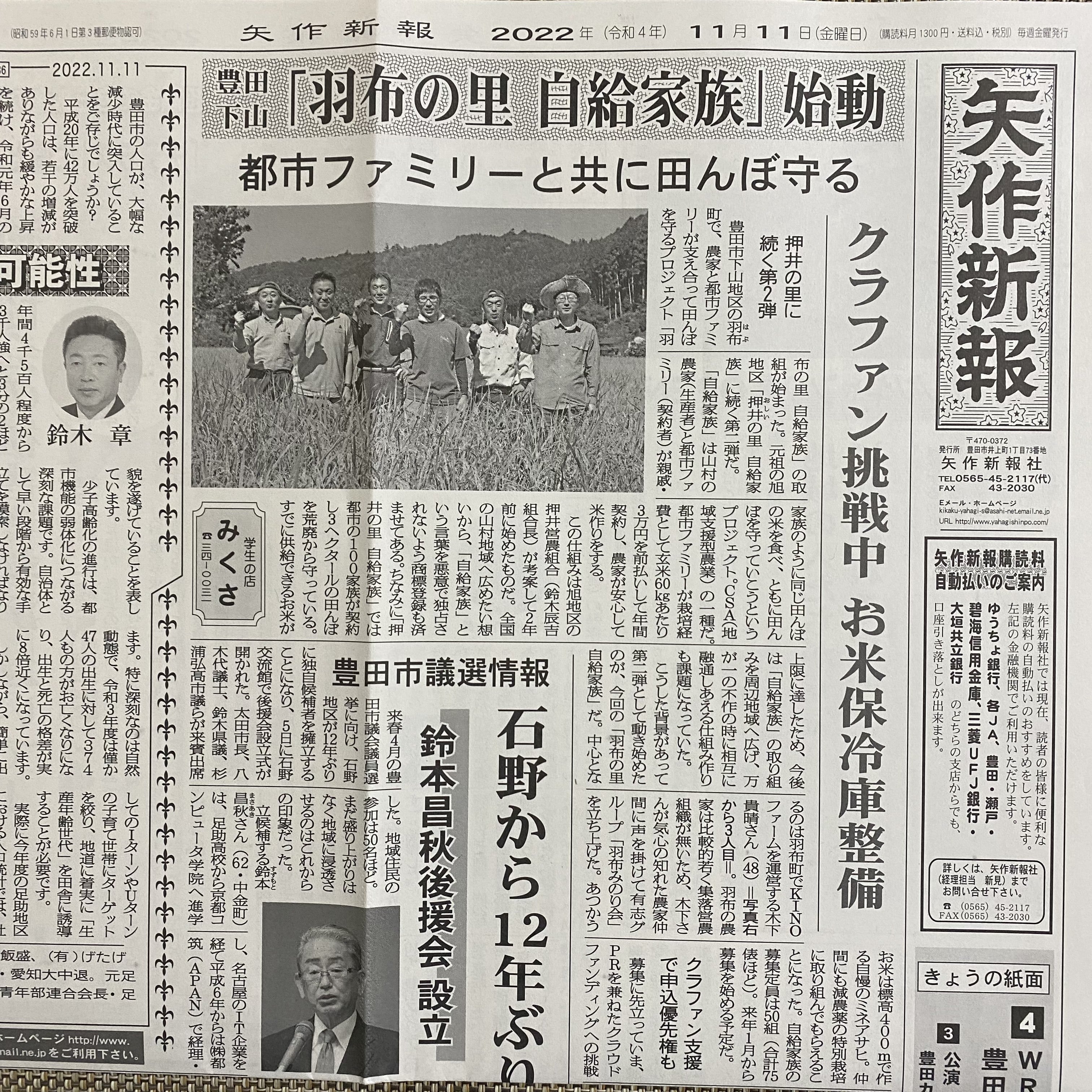 2022/11/17 19:17先日の事ですが、地元新聞の「矢作新報」さんに、なんと1面で大きく取り上げてもらいました!この記事以外にも、担当記者さんのコラム「やはぎウィークリー」でも記事にして頂きました!早速、廻りの方々から「矢作新報読んだよ!」とお声がけ頂いております!ありがとうございます!まだまだようやく20%。これから中盤戦になりますが、少しでも多くの方に届く様にこれからもがんばって行きます!KINOファーム もっと見る