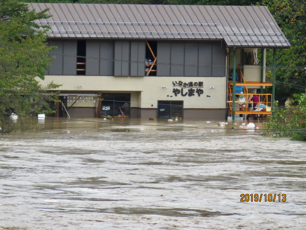 2階から見守る私の姿。店内160センチを超える浸水でした。60年の人生の中で最悪の被害でした。