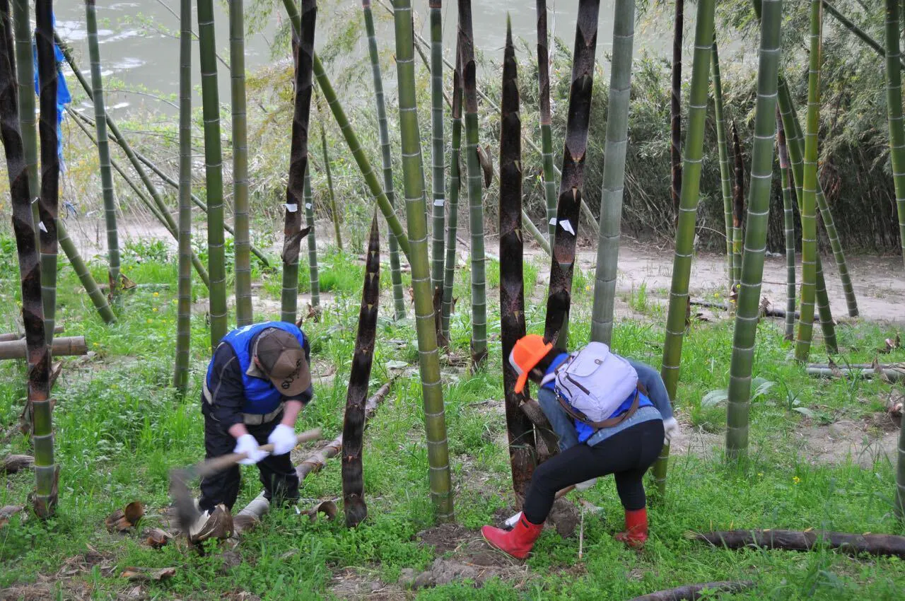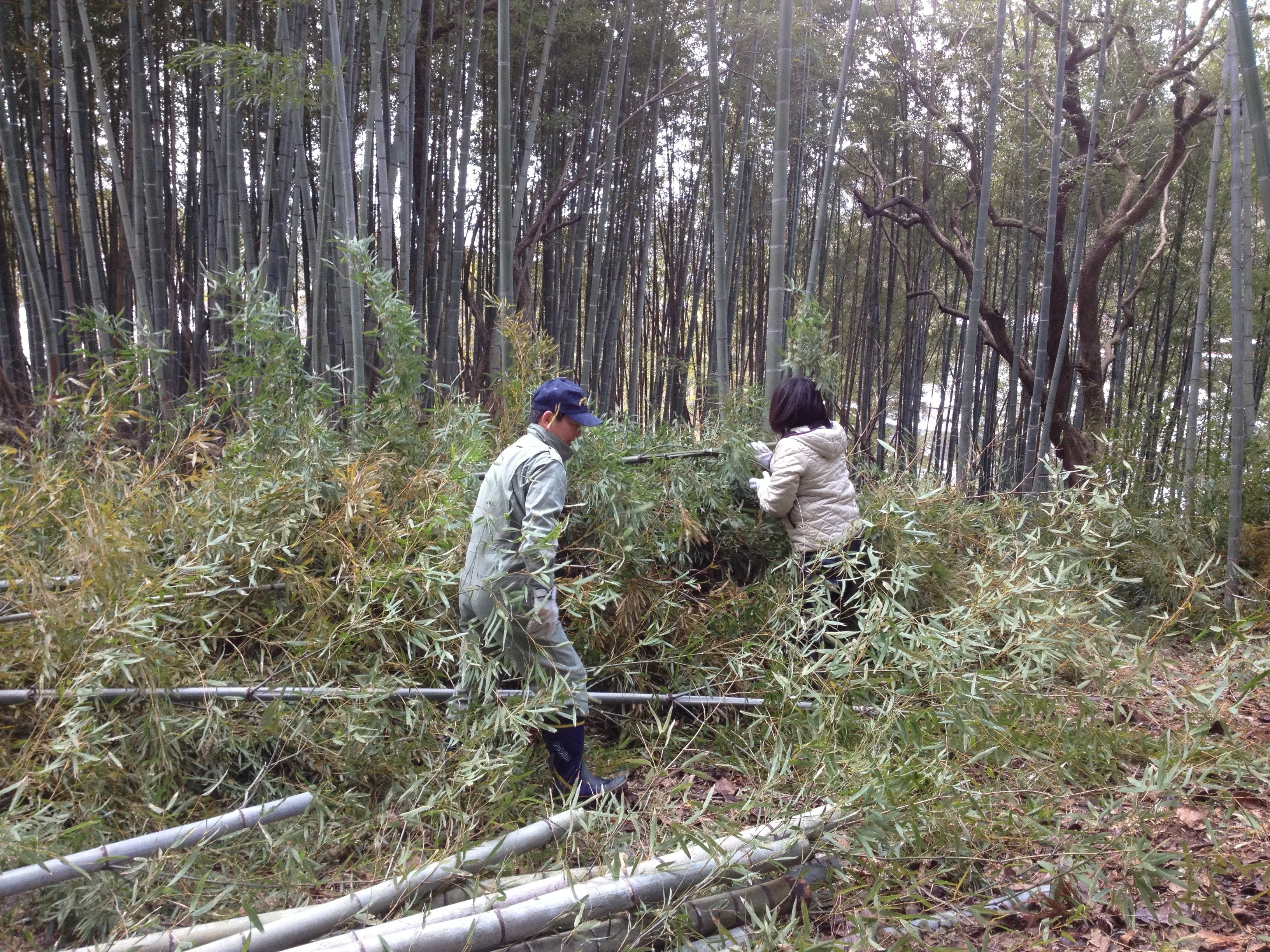 かぐや姫育て隊。6歳以上の竹を切り倒し、親竹を更新します。11月から2月までの冬季間に作業します。