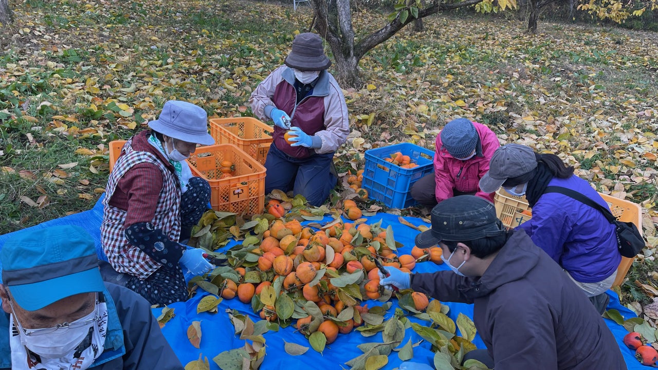 時間のかかる収穫作業、選別作業、そして柿むきまでお手伝いいただきました。
