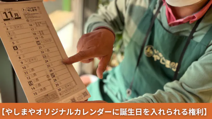 【やしまやオリジナルカレンダーに誕生日を入れられる権利】 30,000円