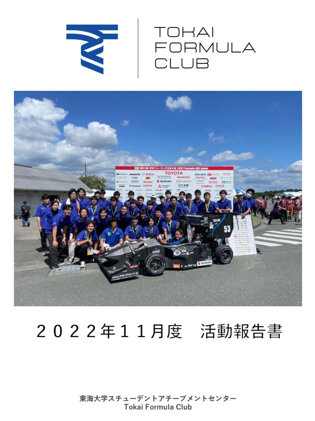 はじめまして!東海大学の学生フォーミュラチーム、Tokai Formula Club です! 私たちは毎年 9月に行われる学生フォーミュラ日本大会に向けて、車両1台を設計から製作、テストまで行っています。