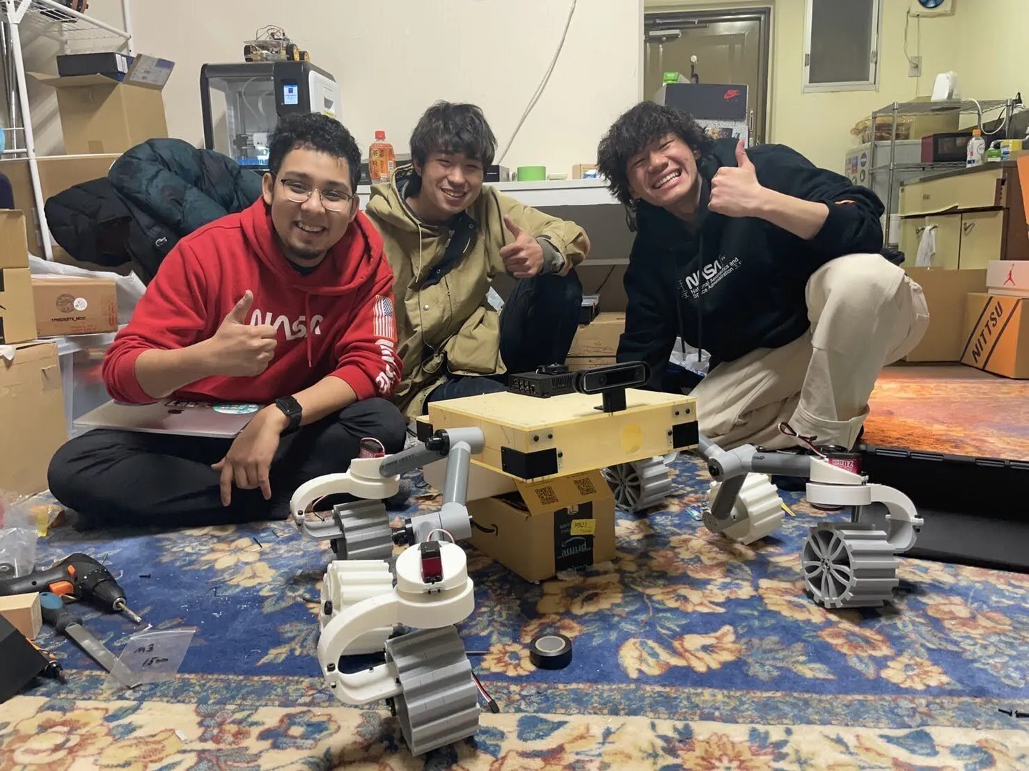 ここに参加したいと手を挙げたのが、後に中心メンバーとなる長岡佳汰と永原陵司です。すでにロケットやロボットの開発経験があった2人は、宇宙に対する強い熱意がありました。彼らの情熱を受けた阿依は、一度諦めたURCへの挑戦を決意します。ARES Project 誕生の瞬間です。