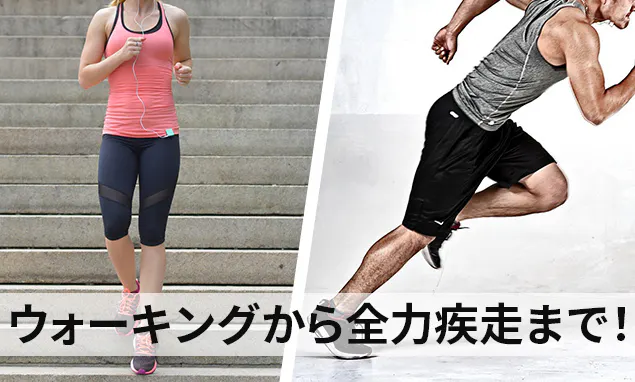 軽いウォーキングやラン等の有酸素運動から全力疾走まで幅広く行うことができます。