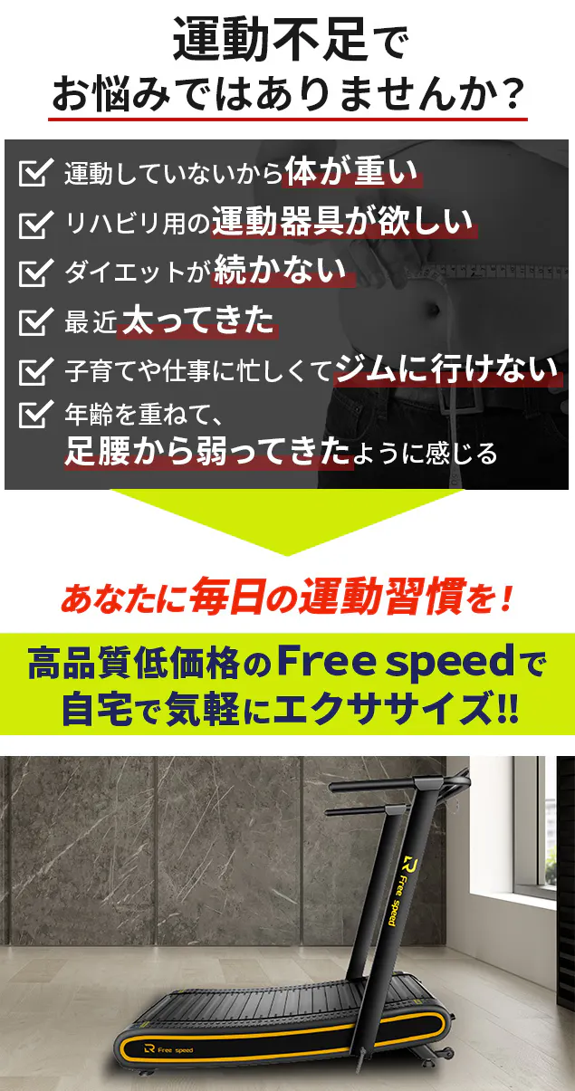 Free speedは、高品質だけど低価格、そして身体にやさしいトレッドミルです。