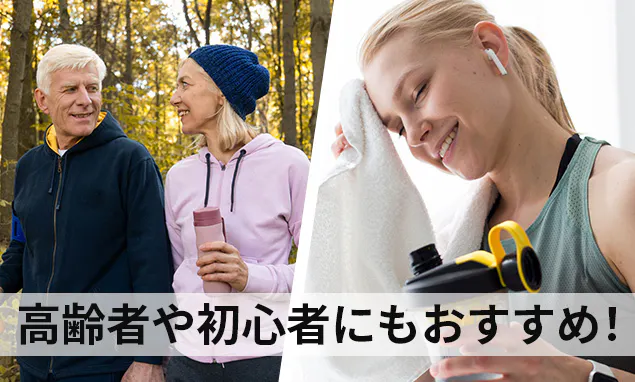 自分のペースで運動ができるので、無理なく足腰や体幹の強化にも繋がります。