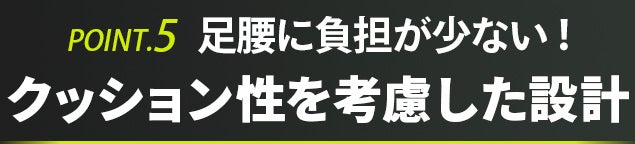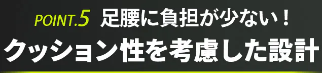 ウォーキングやランニングで痛めやすい腰、膝、足首への衝撃をしっかりと吸収します。