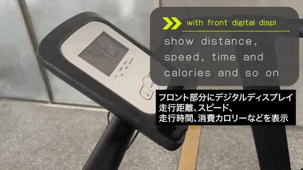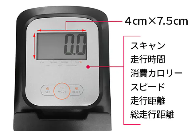 4cm×7.5cmの表示版に、走行時間、スピード、走行距離、消費カロリーが表示されます。