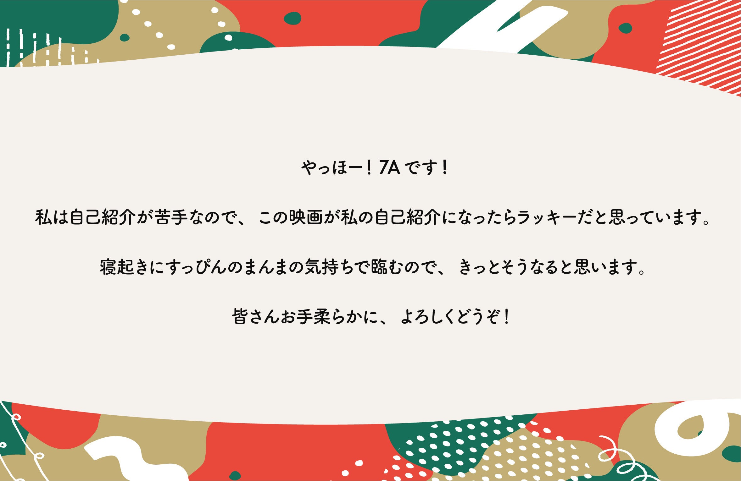 7A(nanae)なまえみたいな名前。くだものをおなかいっぱい食べたい。その日見かけた犬の数を数えながら暮らしています。