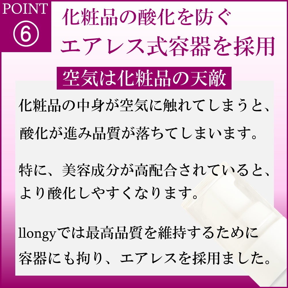 llongy製品は肌の悩みをテーマにした美容成分を高配合しております。