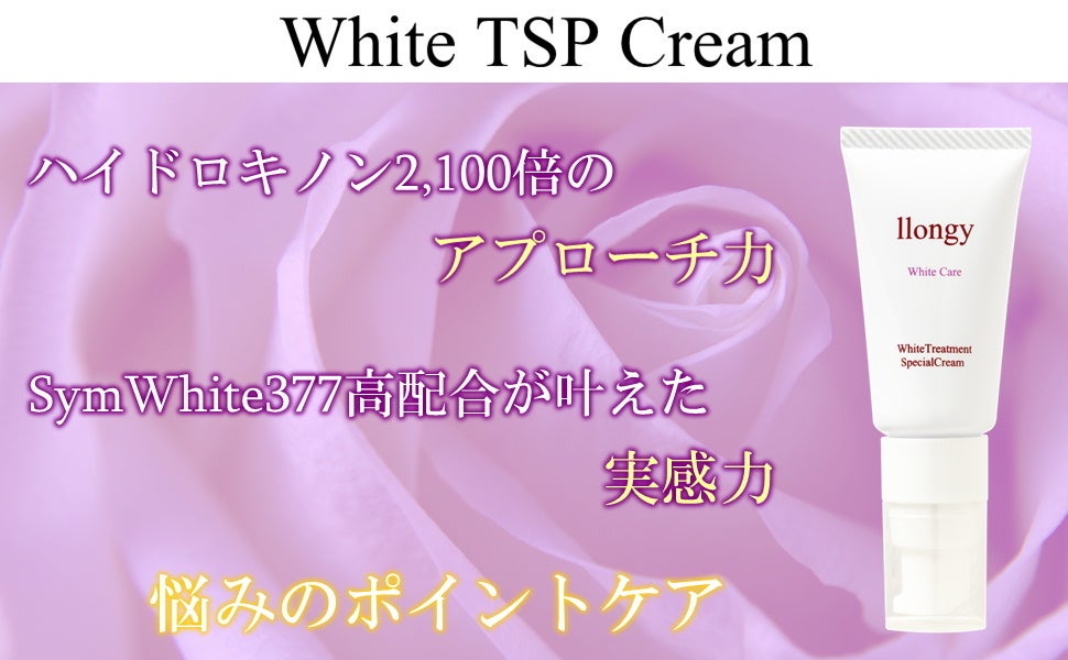 効果を実感できるシミのケアを目指して私たちllongyのホワイトTSPクリームは「シミを改善する」ことをテーマに商品開発を始めました。「効果を追求、変化を実感する化粧品ブランド」として最初に注目した成分は『ハイドロキノン』と呼ばれる美白成分でした。ハイドロキノンは「肌の漂白剤」とも呼ばれ、強力な美白成分として知られ多くのシミケア製品が販売されています。llongyでも当初はハイドロキノンをベースにシミ改善クリームの考案を始めました。ハイドロキノンをベースにするデメリットを懸念強力な美白効果があるハイドロキノンですが、大きな短所がありました。■ハイドロキノンは紫外線に弱い■ハイドロキノンは非常に紫外線に弱い成分です。外出時は念入りな紫外線対策が必要になってしまいます。ハイドロキノン使用時に紫外線を浴びることにより、肌トラブルが発生する事案もあります。ハイドロキノン製品自体の保管にも気配りをする必要があります。取り扱いが難しいハイドロキノンは普段使いのスキンケアには不向きでした。■ハイドロキノンは刺激性が高い■ハイドロキノンは安定性が低く、肌への刺激性が高い成分です。ハイドロキノンを使用する前に念入りに肌を整えることが推奨されています。また、敏感肌や乾燥肌、肌の弱い人には刺激が強く、赤身やヒリヒリ感が出ることもあります。知名度が低い『SymWhite377』に注目様々な美白成分の中でもあまり広く知られていない「SymWhite(シムホワイト)377」に注目しました。シムホワイト377は、ヨーロッパアカマツ(常緑針葉樹)に含まれている「ピノシルビン」というポリフェノール成分をもとに開発された美白成分です。ヨーロッパアカマツ■刺激性が低い■植物由来の天然成分であるシムホワイトは「刺激性の低さ」という特徴があります。敏感肌や乾燥肌の人も使うことができます。全肌質に使える優秀な美白成分です。■非常に強力な美白効果も■知名度が低くSimWhite377が配合された製品が少ない為あまり知られていませんが強力な美白効果があることが分かっています。更にシミへ直接作用する効果もあるので、根本からのシミ改善効果が期待できます。シミの原因となるメラニンへの作用比較■APPSとの配合で更に1.7倍の美白効果に■「アプレシエ」と呼ばれることがある成分『浸透性ビタミンC誘導体APPS』。従来のビタミンC誘導体との比較では、数倍~100倍程度の浸透力がある高価な成分です。SymWhite377とは非常に相性が良い成分で、合わせて配合することでメラニン抑制(シミ改善)効果が1.7倍まで向上します。llongyのWhite TSP Creamも合わせて配合しております。「効果を追求」した渾身のシミ用ナイトクリームです。高配合されたSymWhite377をお楽しみ頂けると幸いです。