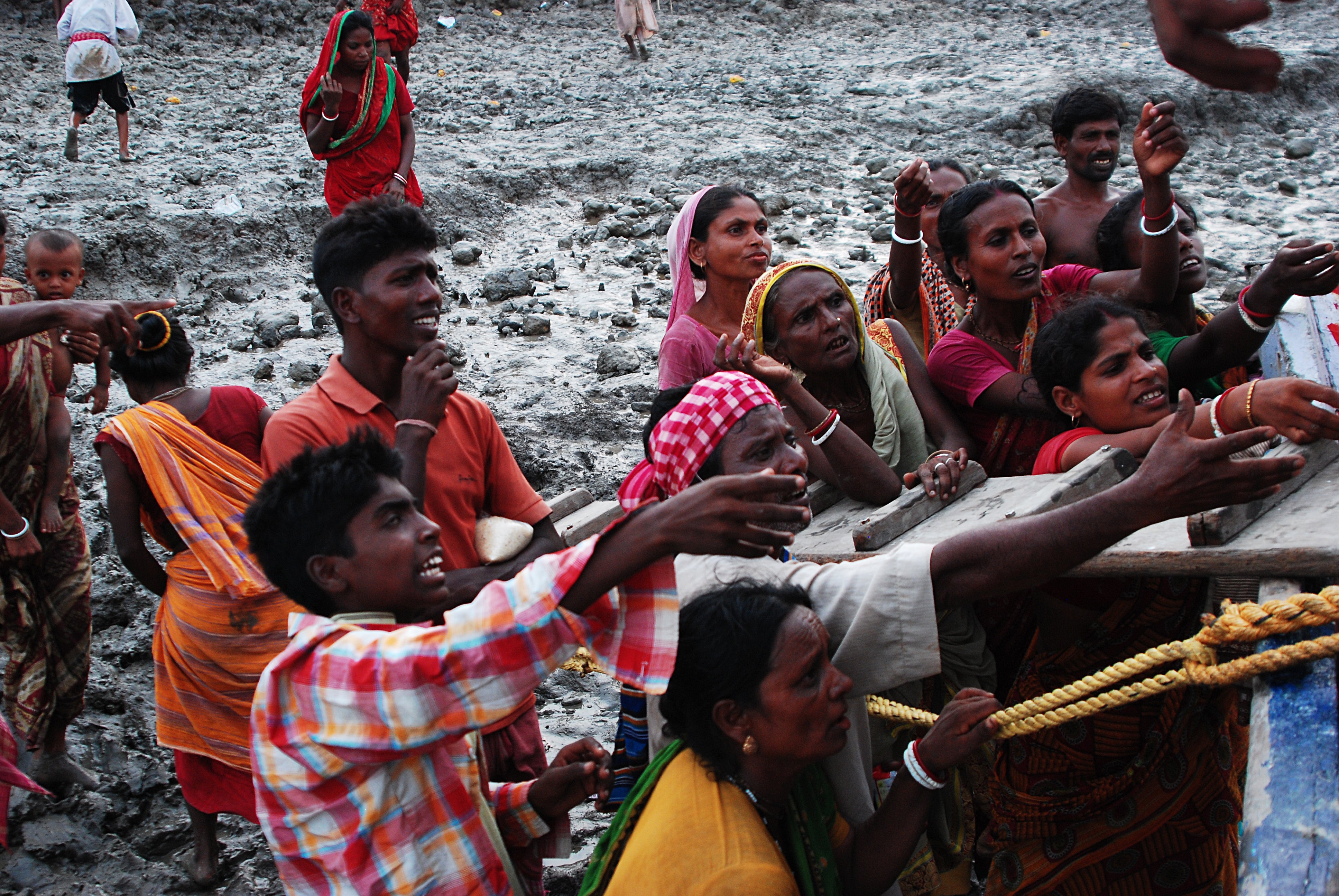 シュンドルボンのサイクロンについて前回書いたところで、表紙挿画をお願いしている金田卓也さんから、写真をいくつかいただきました。シュンドルボンは昨年も大きなサイクロンに襲われ、大きな被害が出たそうです。救援活動に参加した金田さんのベンガル人のご友人が、この小説がシュンドルボンの地にくらす人々の生活を考えるきっかけになるならば、ということで、写真をご提供くださったとのことです。