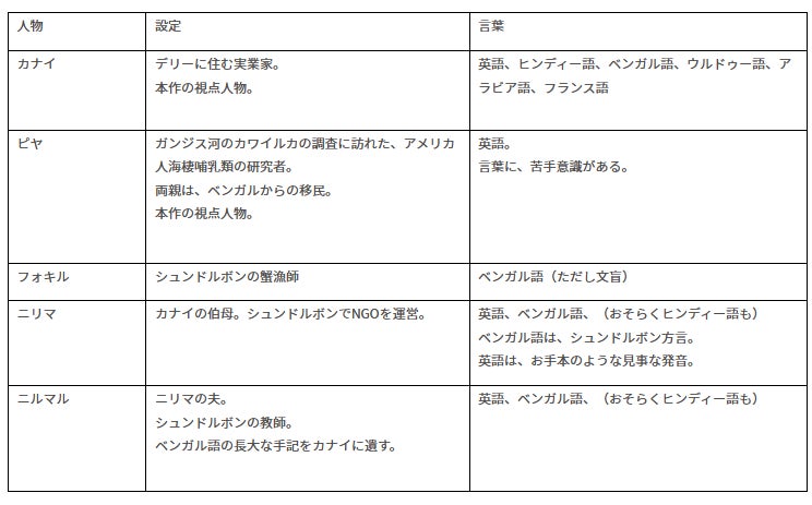 もっとも、翻訳者としては(まして私は残念ながらベンガル語ができないので)、「『飢えた潮』の言葉の問題で一番追い込まれたのは、どの登場人物でもなく、この自分だ!」と声を大にして言いたい気持ちではあります(ベンガル語の翻訳に当たっては、本当にいろいろな方のお力をお借りしました)。