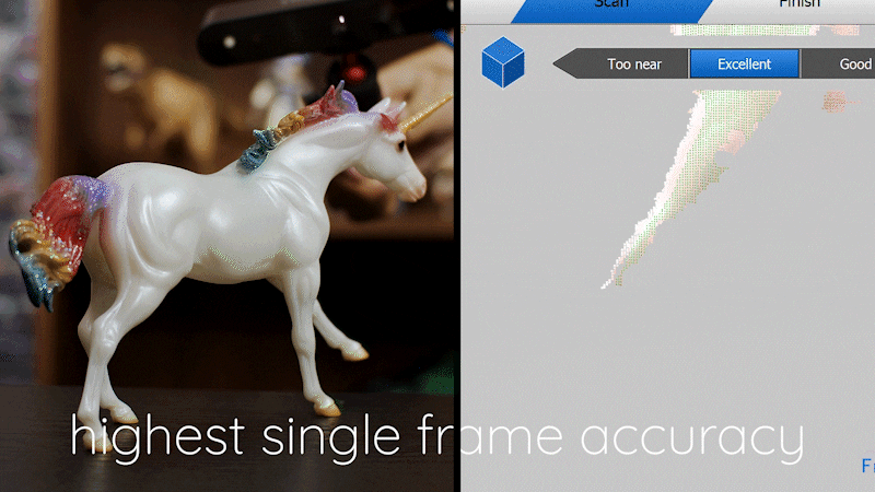 3Dスキャンの工程ごとに使い分けることで、ユーザーの求めるディテールを、隅々までとらえた高精度なスキャニングを支援します。