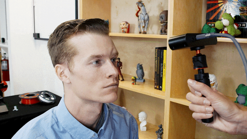 POP 3Dスキャナーには、顔/人体スキャンに最適な専用スキャンモードを搭載しております。赤外線不可視光の安定した光源特性を利用しているため、光点滅による刺激から保護します。人や動物を直接スキャンして、VRやアニメーションに利用することができます。
