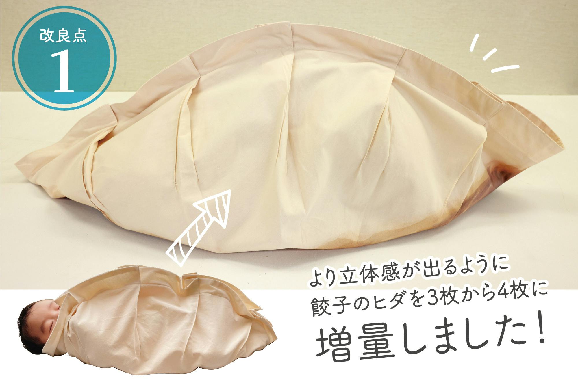 「餃子おくるみ」とは赤ちゃん用の餃子の形のおくるみです。