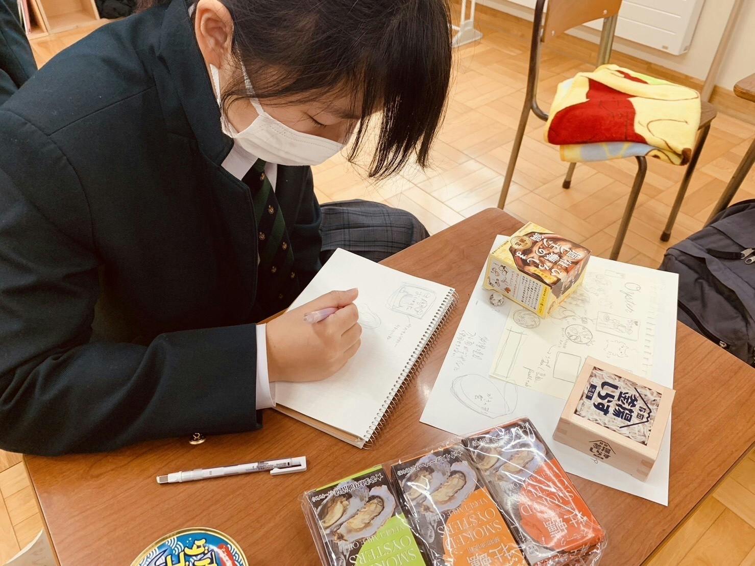 牡蠣のアヒージョ缶詰のデザインは、同高校の美術部の皆さんに作成を依頼しています!