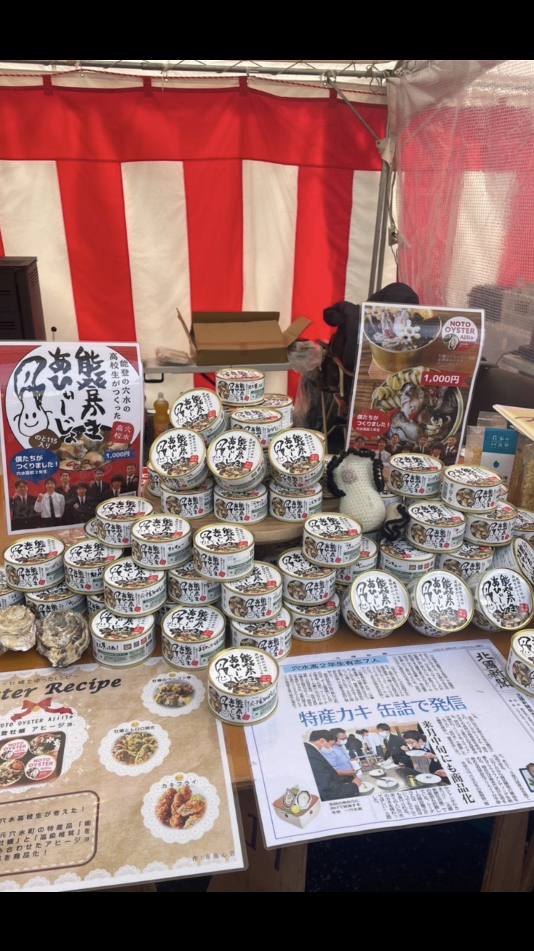 先日、2/11.12に開催された「穴水雪中ジャンボかきまつり 2023」が無事に終了しました‼NPO法人チーム能登喰いしん坊の皆さんと屋台を出来て、貴重な体験になりました!能登牡蠣のアヒージョ缶詰を購入して下さったお客様、誠にありがとうございます。改めて能登の優しさに触れた感じがします。チーム能登喰いしん坊のメンバーの皆様、お越し頂いたお客様に心より感謝いたします。