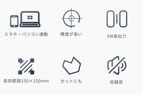 パソコンだけでなく、スマホとも連動可能!刻印がもっと簡単に!また、紙で描いたものをスマホで撮影すれば素早く刻印可能!スマホのアプリやパソコンのソフトウェアも日本語に対応しているため安心です。
