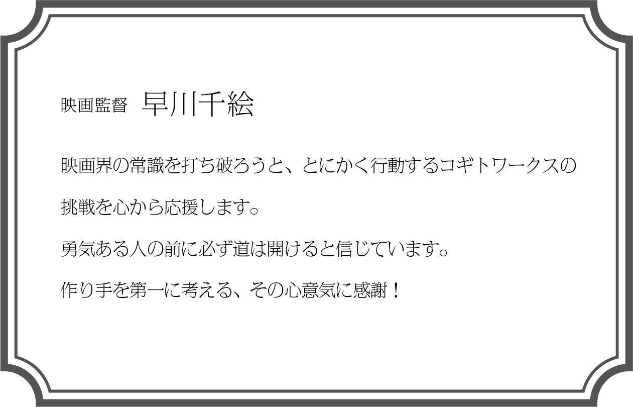 同時に、「企画開発」「制作」「仕上げ」「宣伝」「配給」を分業せず、一貫して行うということは、今後の映画ビジネスにおける1つの正しいカタチなのではないかと感じています。それを、我々コギトワークスが自ら実践していくことは、邦画業界の未来にとっても意義のあることだと信じ、このプロジェクトを立ち上げました。