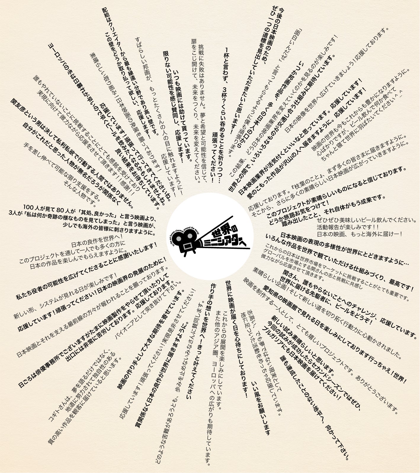 支援者のみなさまからいただいた「応援コメント」を色紙の寄せ書き風にまとめてみました!!