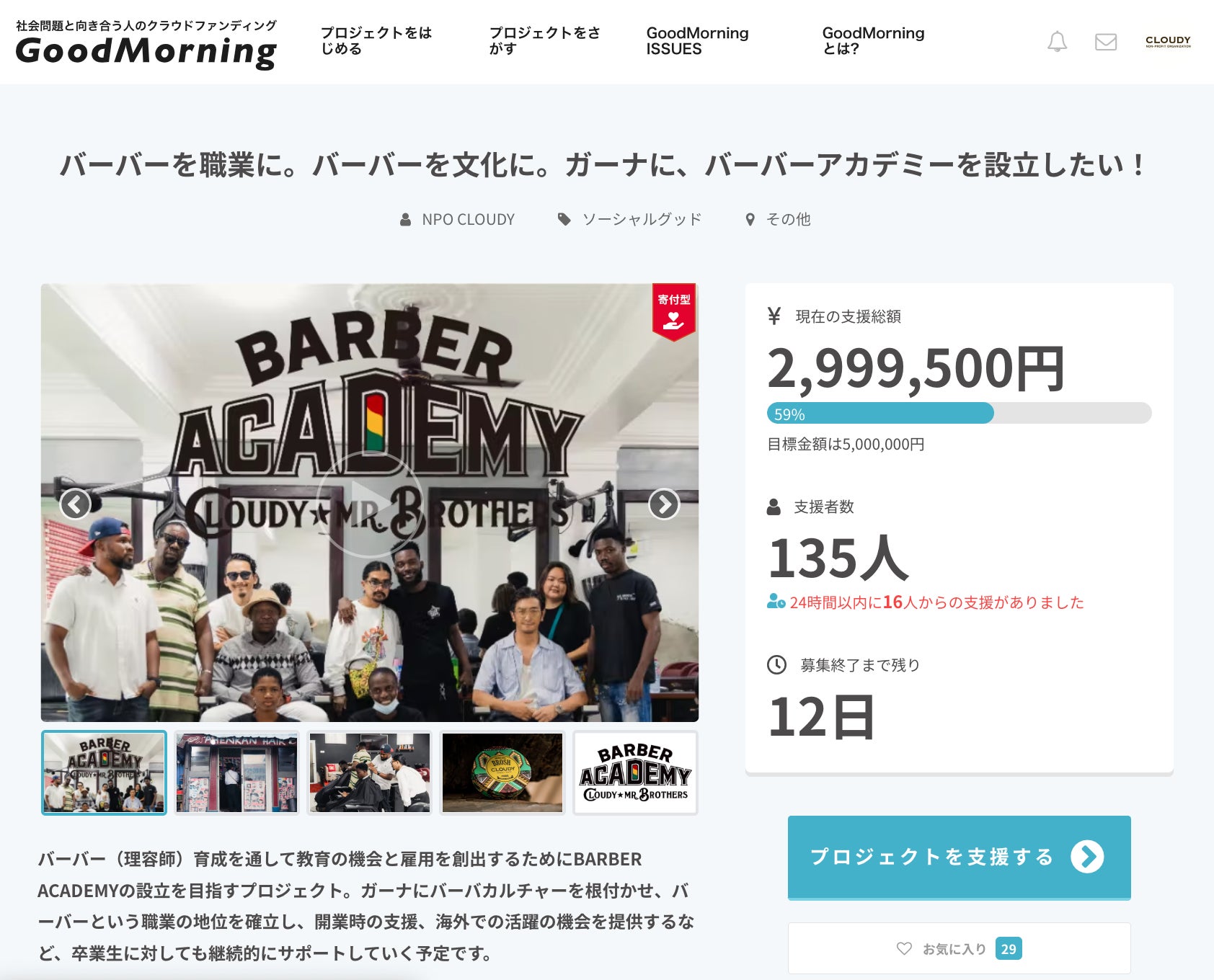 『バーバーを職業に。バーバーを文化に。ガーナに、バーバーアカデミーを設立したい!』