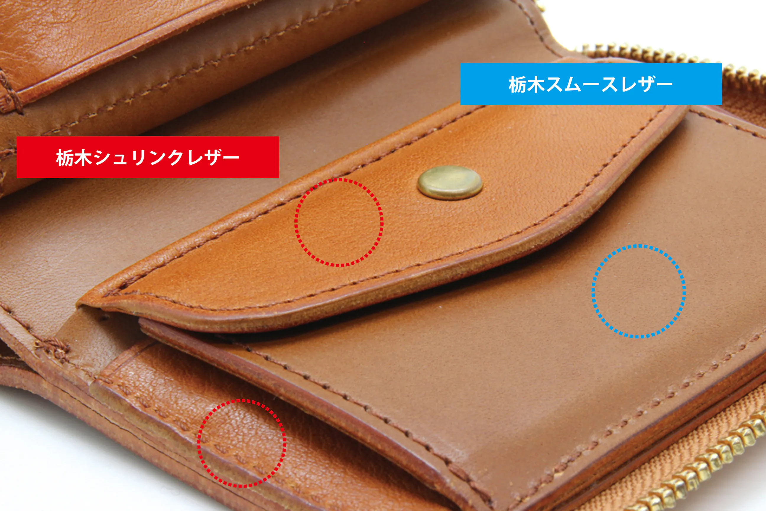 ご紹介するお財布には”栃木レザー”のスムースレザーを使用しています。