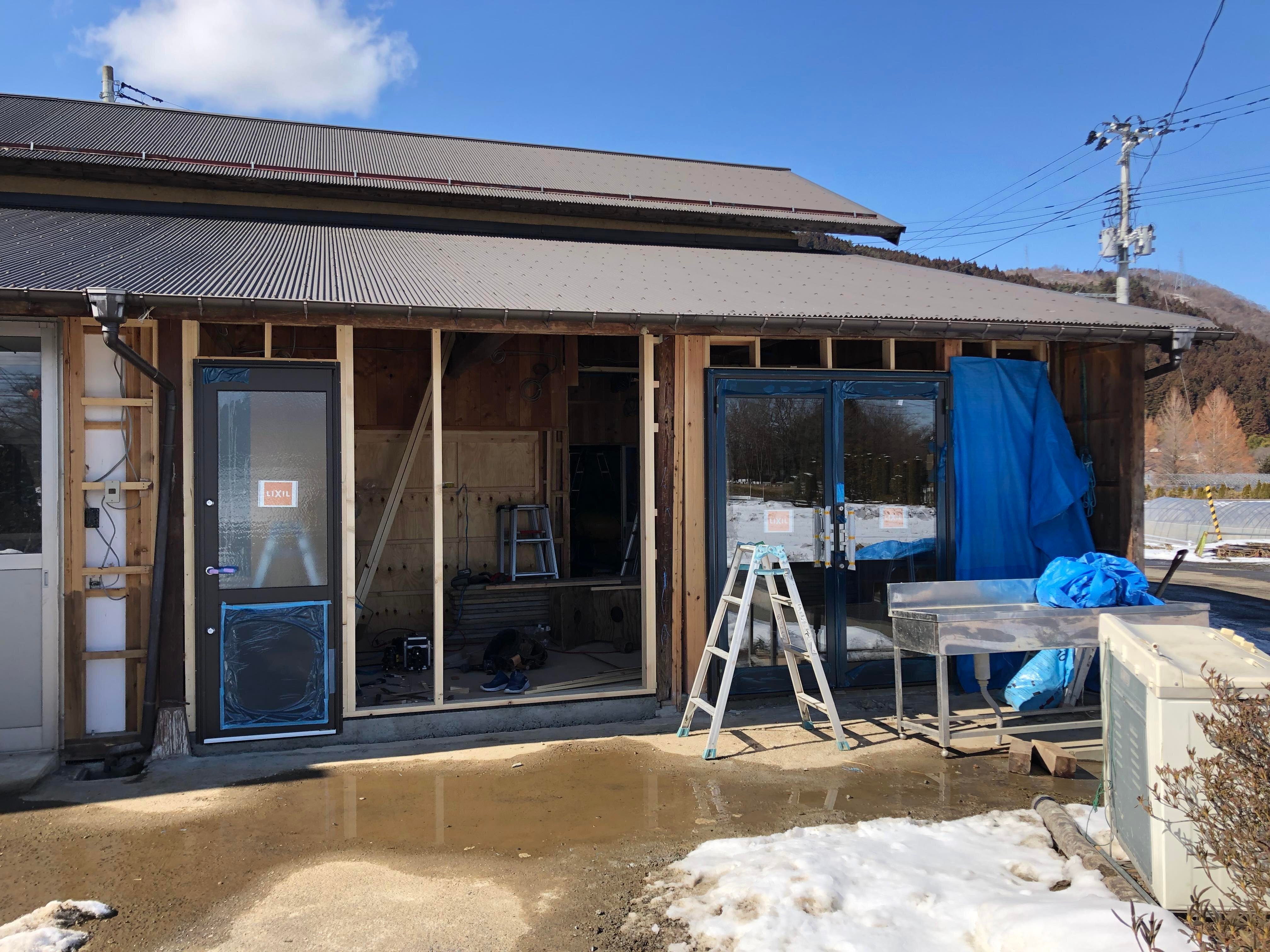 カフェへご来店のお客様はご存知かと思いますが、蔵の改修は順調に進んでいます。まずは、以前ご紹介した牧場側の外壁から。