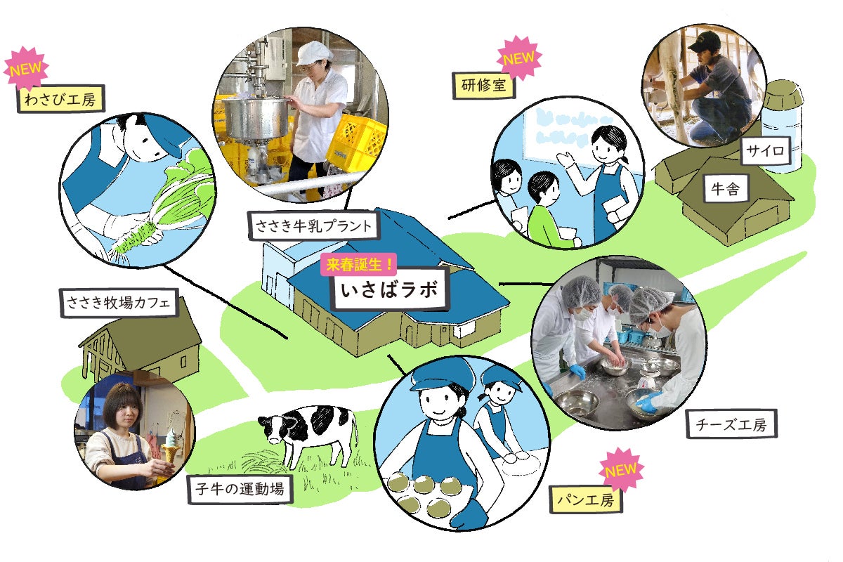 これが、佐々木牧場の敷地全体図です。新たにオープンする土蔵には「いさばラボ」と名前を付けました。佐々木牧場の所在地である入左原(いりさばら)と、新たなものが生まれる場としてのラボラトリーを組み合わせた造語です。