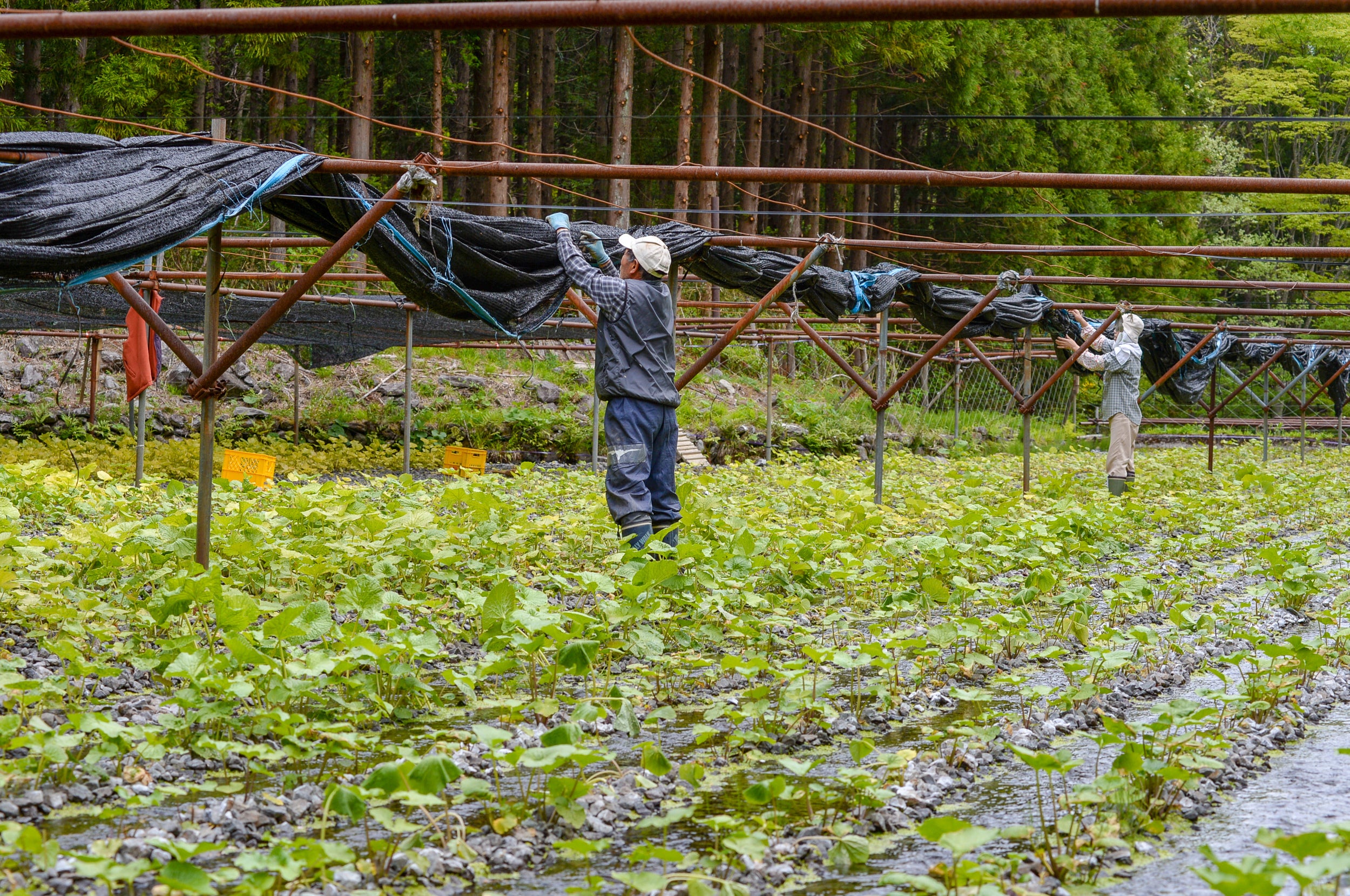 佐原には、吾妻連峰の豊富な伏流水が湧き出る場所があり、その貴重な環境を生かしてわさび栽培が行われています。