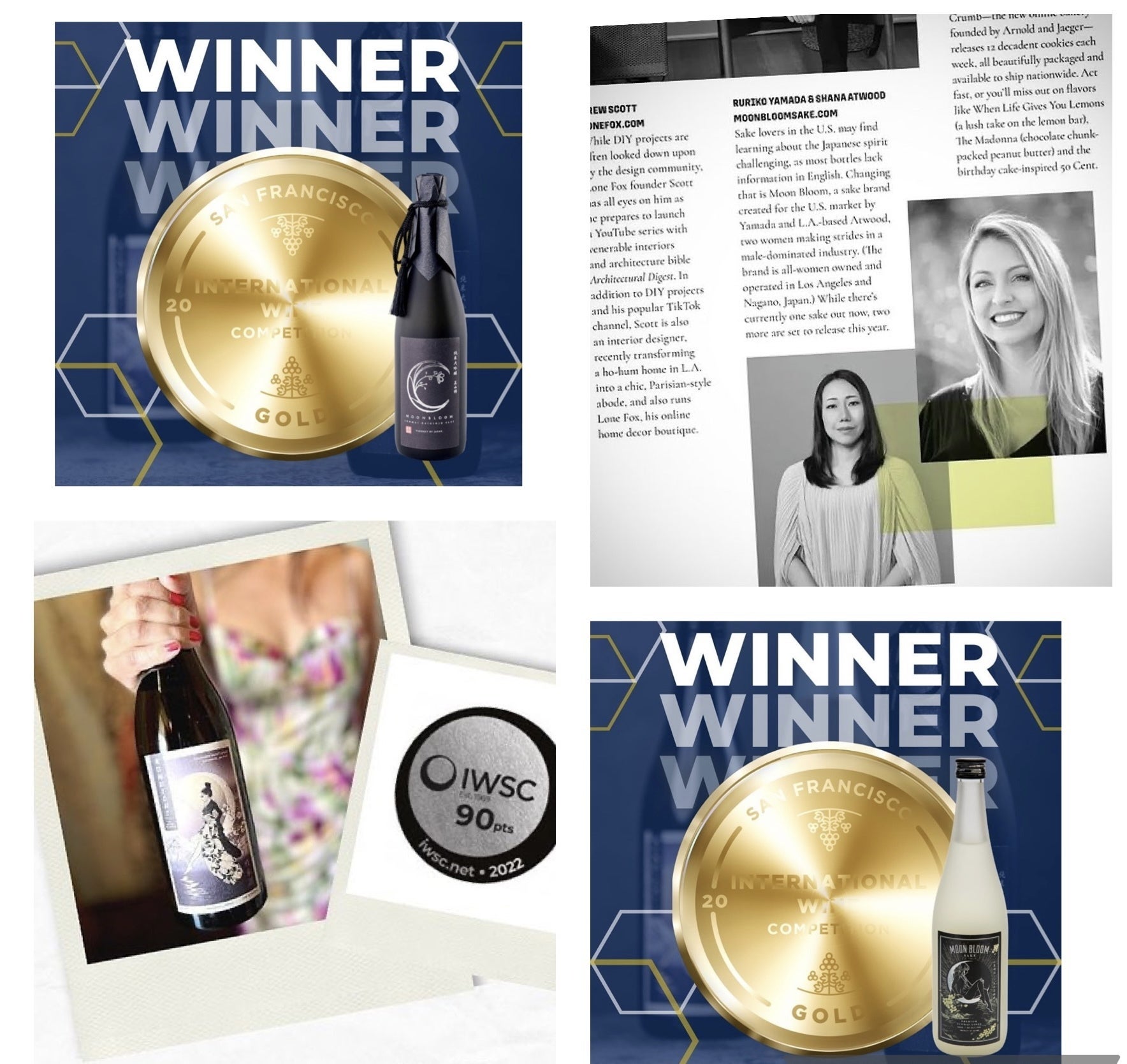 イギリスで開催されるIWSC(International Wine and Spirit Competition)での受賞やロサンゼルスの『Angeleno Magazine』で『MoonBloomSake』を取り上げて頂きました‼