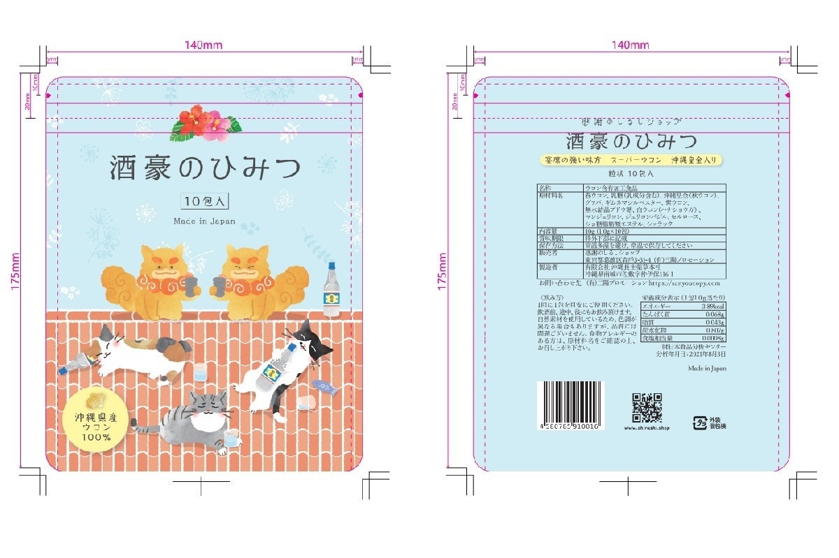 本当は「美肌のひみつ」とか「若さのひみつ」のようなものでも良かったのですが、取組みのきっかけがお酒を飲む機会が増えたという声を多く聞いたことからでしたので、沖縄長生薬草本社様の他商品のリスペクトも込めて「酒豪」を採用しました。