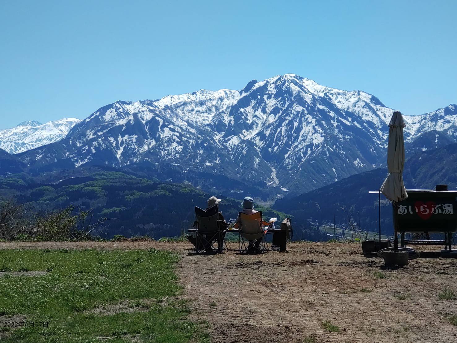 このキャンプスペースは景観が良く、地元の名峰鉾ヶ岳や権現岳の展望が良く、