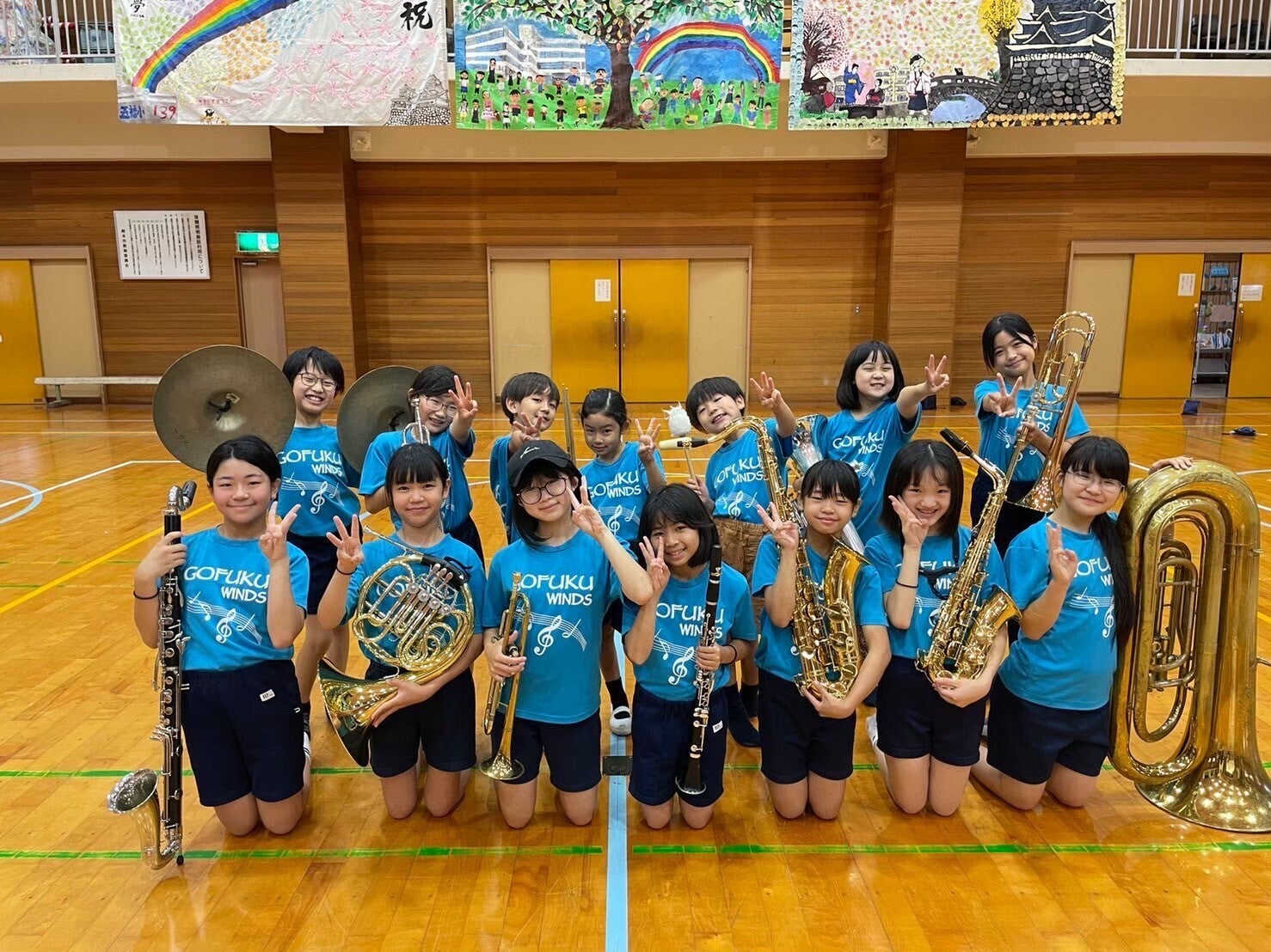 私たちは「五福風流街ウインズ」(ごふくふるまちういんず)という、熊本市立五福小学校の児童14名、力合西小学校の児童2名が活動する少人数の吹奏楽の地域バンドです。