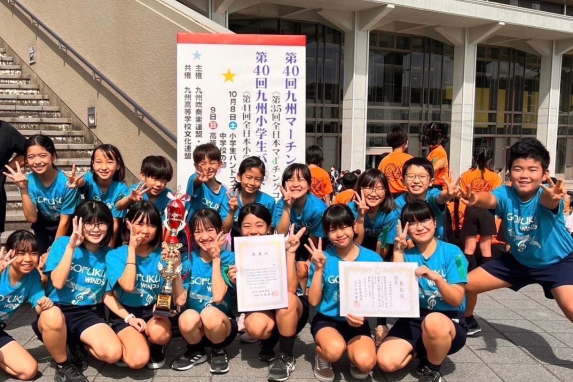 私たちは「五福風流街ウインズ」(ごふくふるまちういんず)という、熊本市立五福小学校の児童14名、力合西小学校の児童2名が活動する少人数の吹奏楽の地域バンドです。