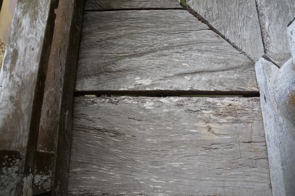 回廊の床の腐食・隙間(全体的)