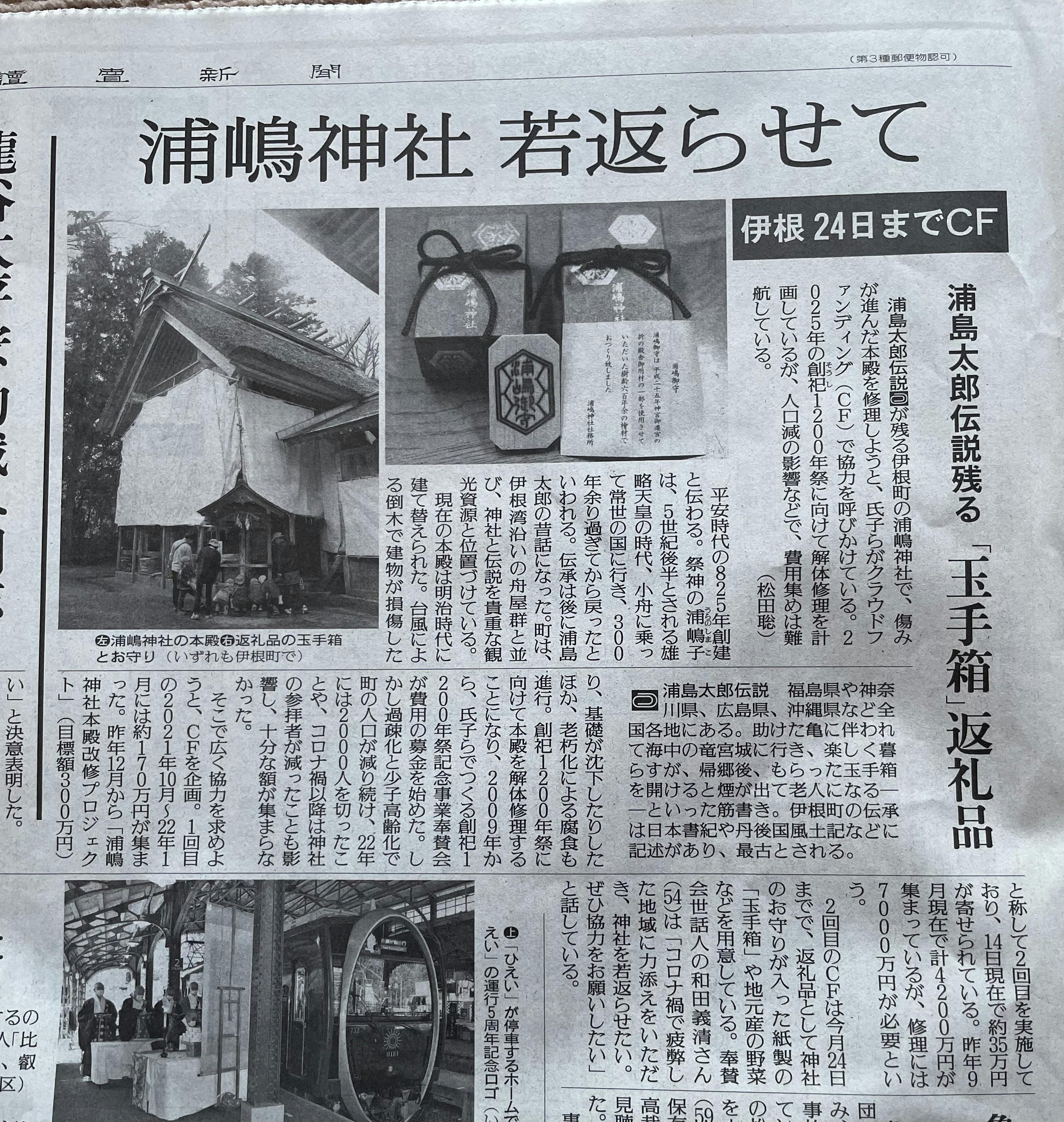 浦嶋神社本殿改修プロジェクト・クラウドファンディングについて掲載していただきました。