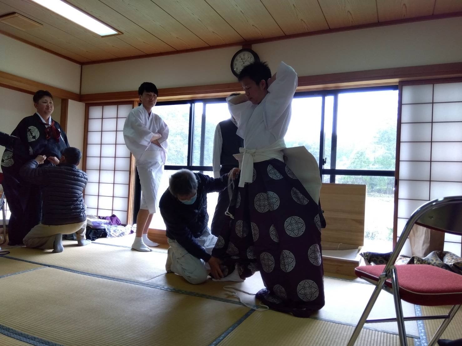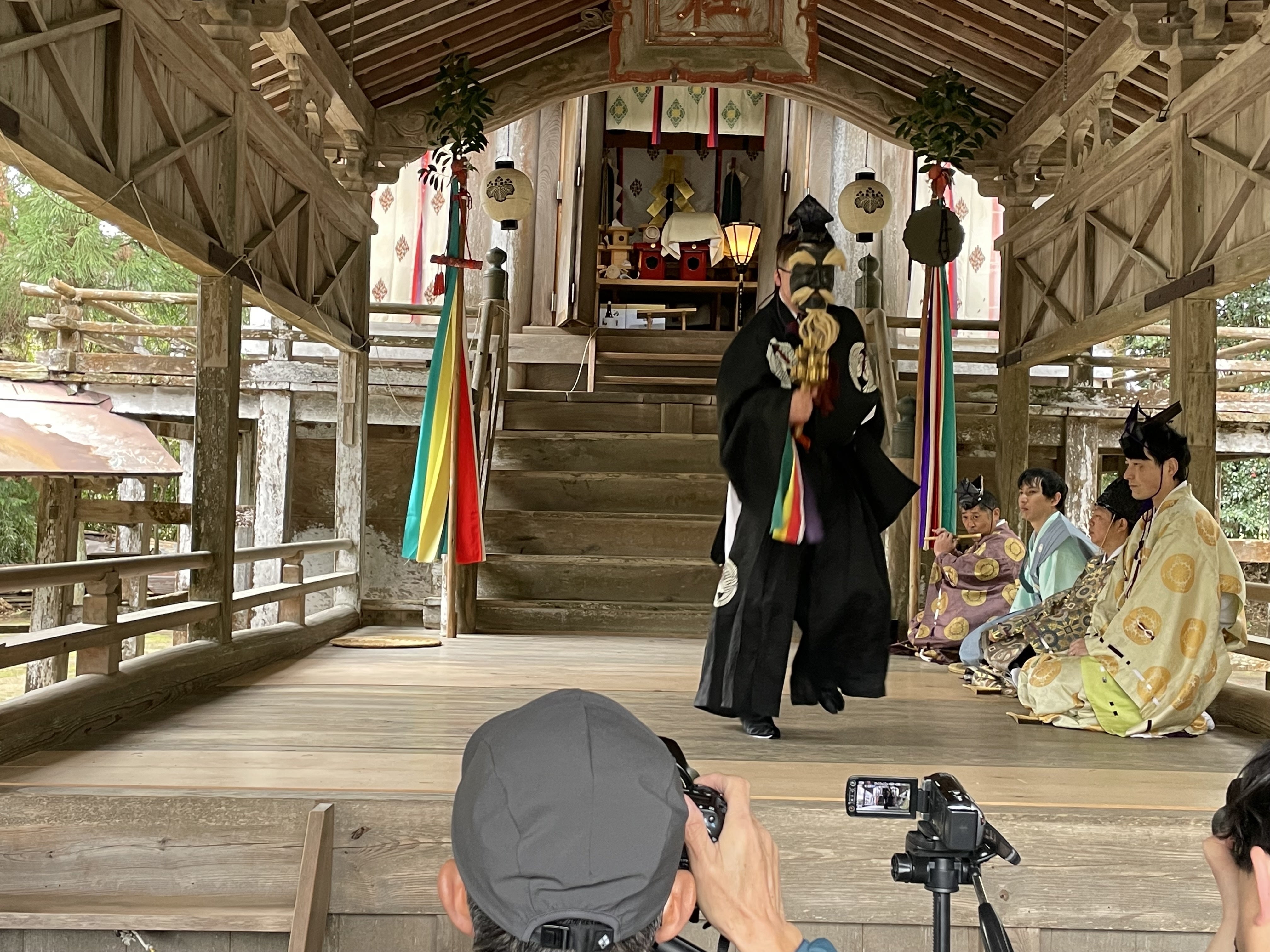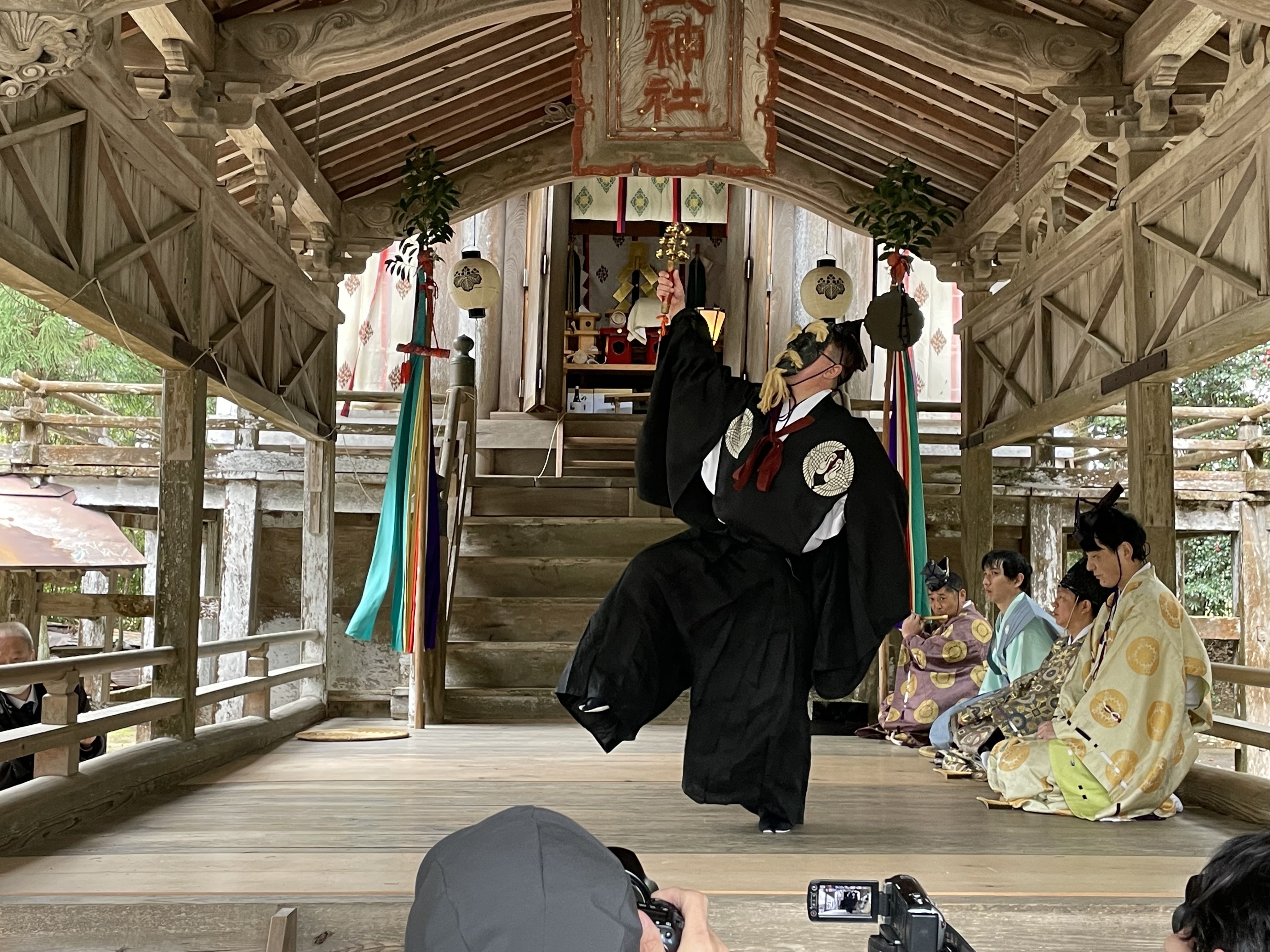 最後に、翁三番叟で拝殿に上がるメンバー達が、舞台に上がる前に、