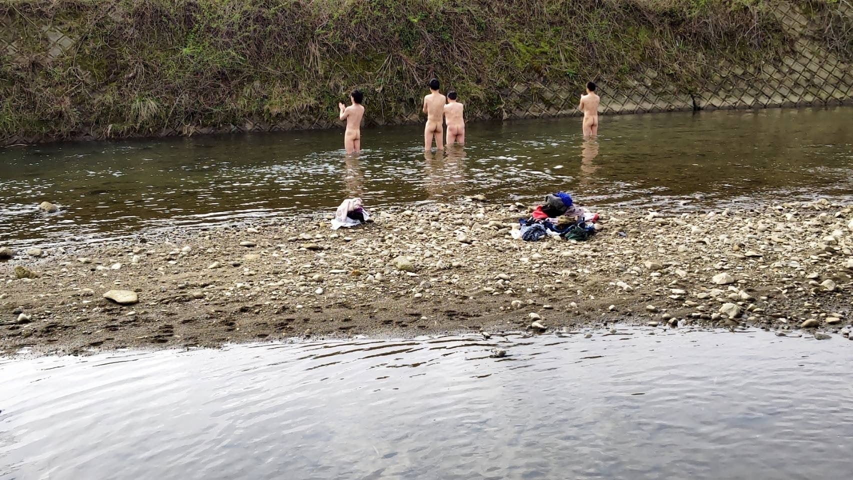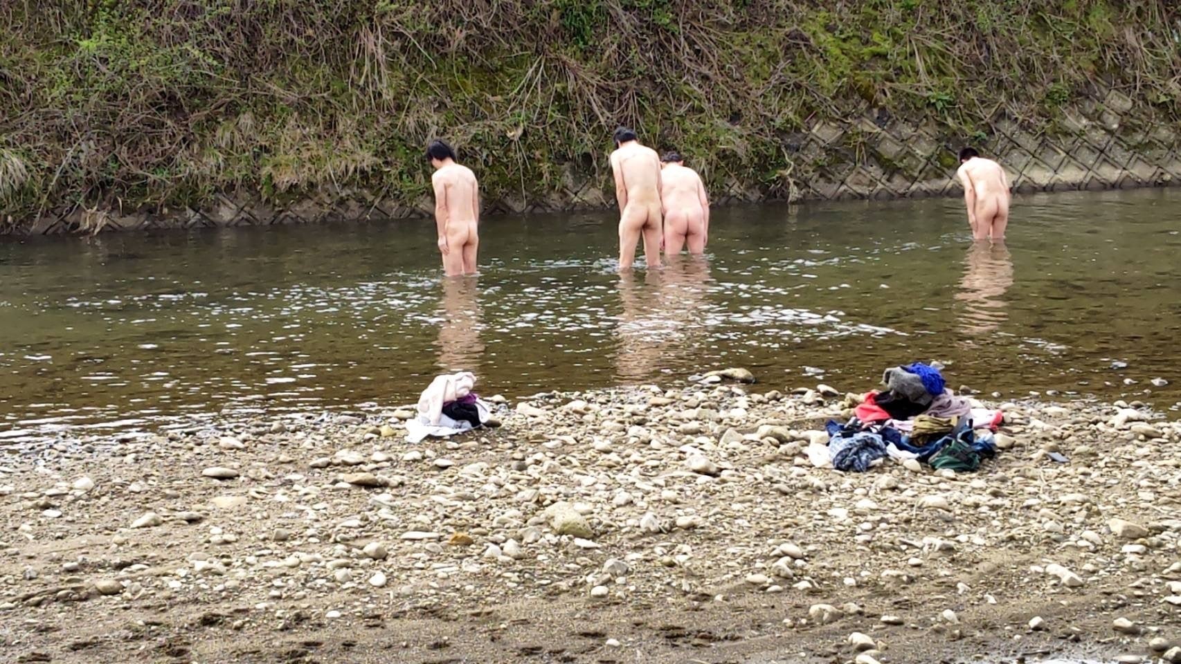 神社裏手にある筒川にて禊で心身を清めているギリギリの画像を紹介しておきます。