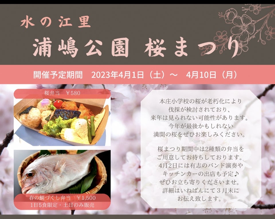 加えて神社に隣接する浦嶋公園にて明日より期間限定で開催される花見祭りの御案内もさせて頂きます。