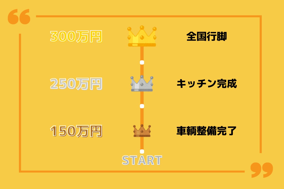 今回のプロジェクトである目標金額は3段階に分け、以下のような内訳で取り組んでいきたいと思っております!