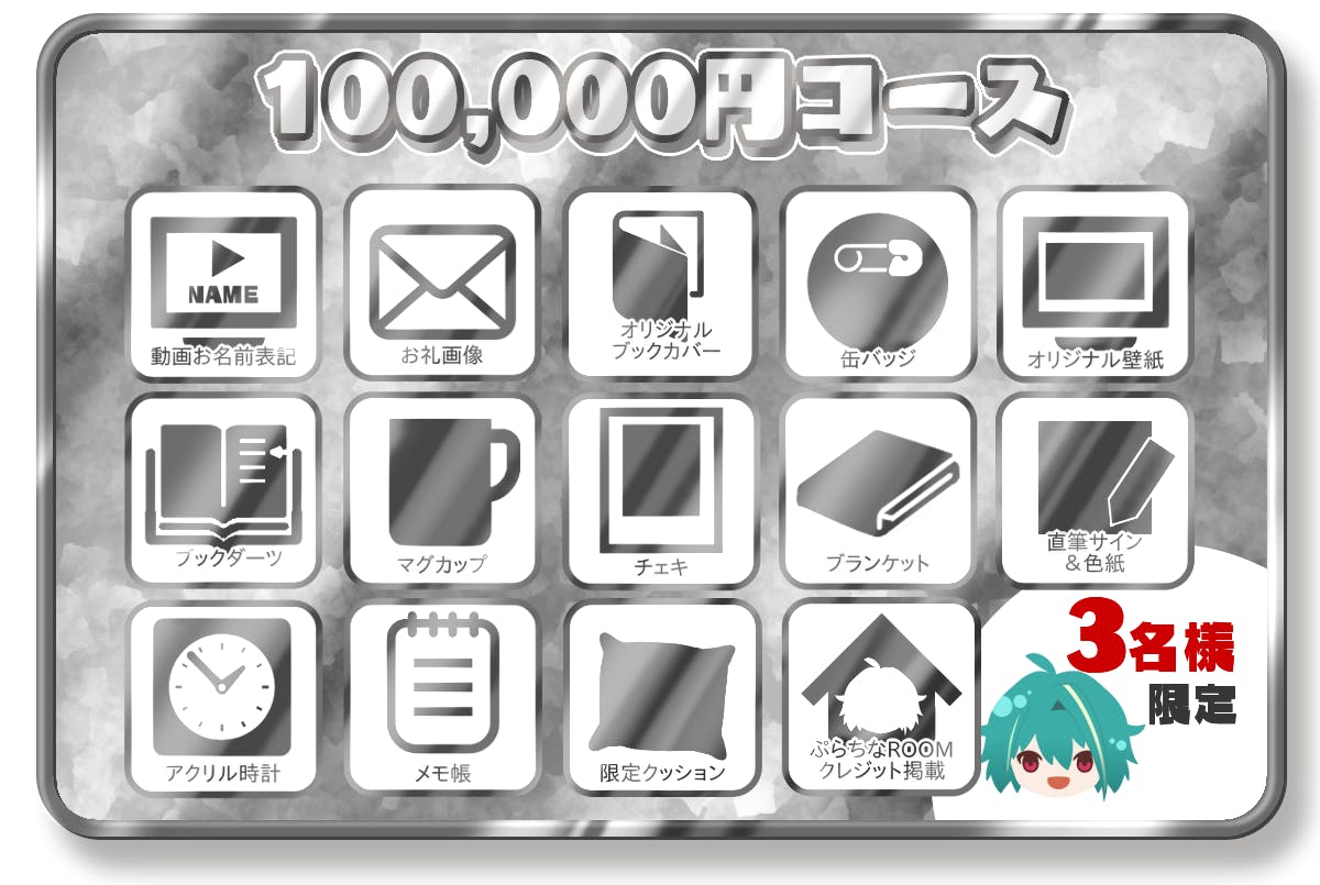 ※グッズ送付が必要なプランでは、配送先の情報を頂戴しております。個人情報は細心の注意をもって取り扱い、本件以外に利用しないこと、また本件が終了後速やかに破棄することをお約束いたします。