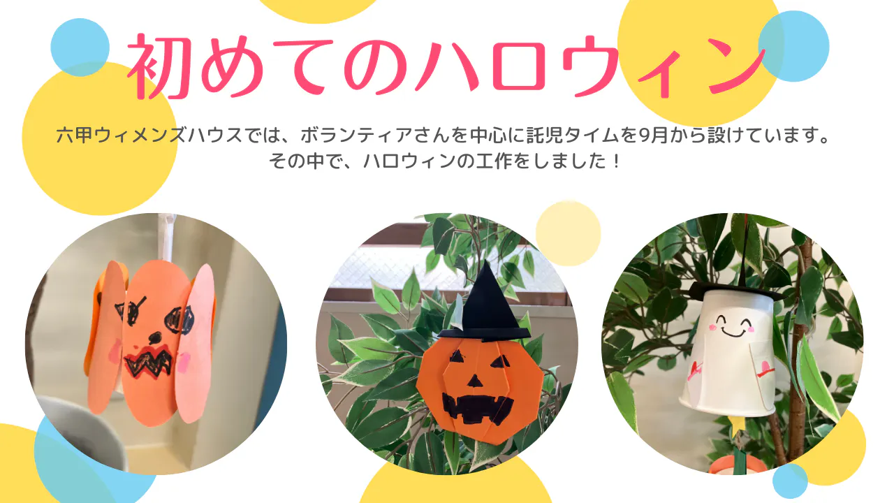 六甲ウィメンズハウスでは、ボランティアさんを中心に託児タイムを9月から設けています。その中で、ハロウィンの工作をしました!