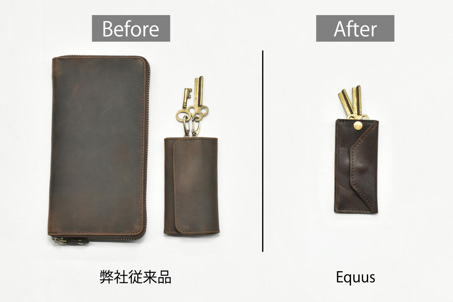 ちょっとしたお出かけに必要最低限のものだけにしたい方のために制作したコンパクトなキーケースウォレット「Equus -エクウス-」です。